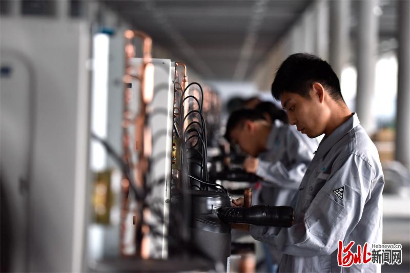 3月30日,河北方苗新能源股份有限公司工人在流水線上調(diào)試空氣源熱泵設(shè)備。河北日?qǐng)?bào)通訊員陳虎斌攝