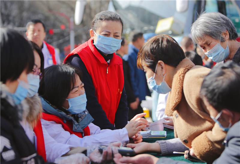 3月4日,涉縣醫(yī)院志愿者在該縣人民劇院廣場開展健康義診活動。河北日報通訊員路海東攝
