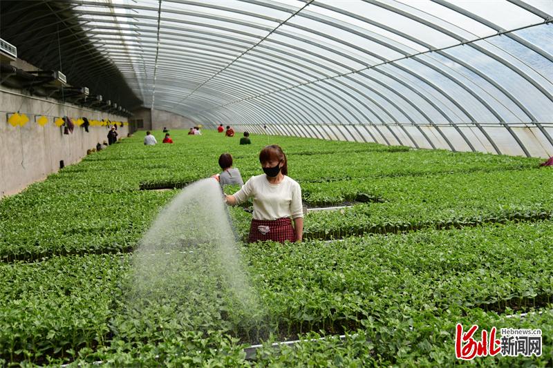 曲周縣發(fā)展育苗特色產(chǎn)業(yè),現(xiàn)有規(guī);鐖(chǎng)30多家,年育苗7億多株,帶動(dòng)蔬菜種植3萬多戶。這是工人在育苗溫室大棚內(nèi)進(jìn)行日常管護(hù)。曲周縣委宣傳部供圖