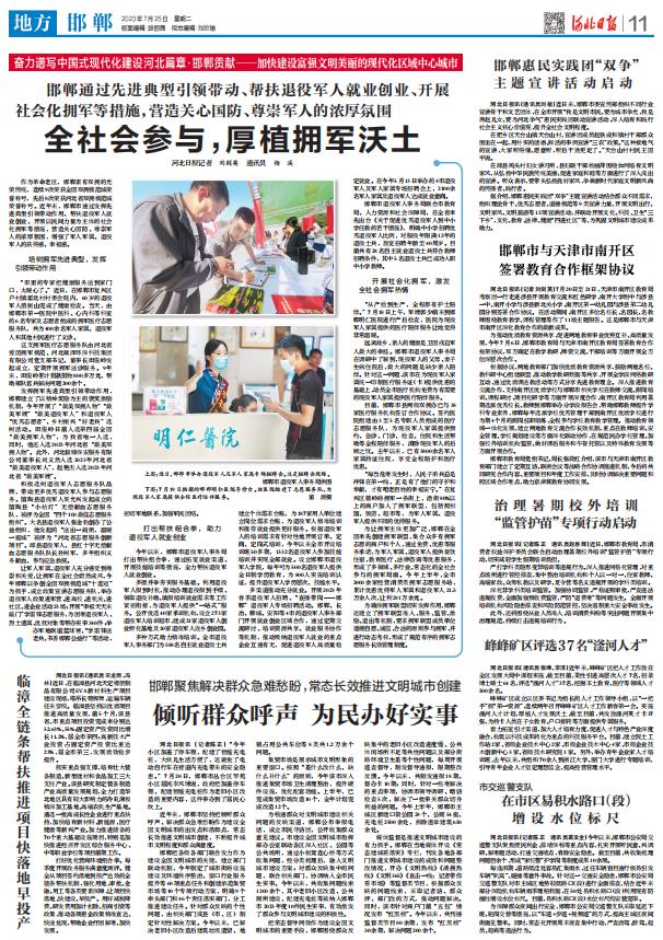 邯鄲通過先進典型引領(lǐng)帶動、幫扶退役軍人就業(yè)創(chuàng)業(yè)、開展社會化擁軍等措施,營造關(guān)心國防、尊崇軍人的濃厚氛圍