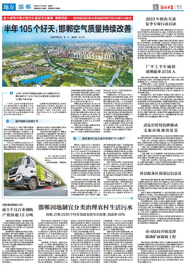 從邯鄲市生態(tài)環(huán)境局獲悉,該市堅(jiān)持精準(zhǔn)治污、科學(xué)治污、依法治污,全力打好藍(lán)天保衛(wèi)戰(zhàn),持續(xù)鞏固空氣質(zhì)量“退后十”成果。今年上半年,全市優(yōu)良天數(shù)達(dá)105天,比去年同期增加3天。