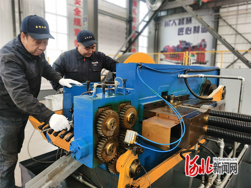 11月21日,國(guó)智科技(河北)股份有限公司1號(hào)車間內(nèi),工人在調(diào)試螺母冷鐓機(jī)。陳正攝