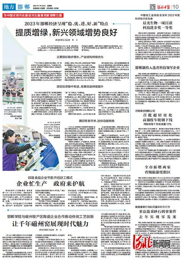2023年邯鄲經(jīng)濟(jì)呈現(xiàn)“穩(wěn)、優(yōu)、進(jìn)、好、新”特點(diǎn)