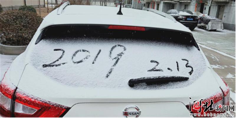 2月12日晚至13日白天,衡水市出現(xiàn)2019年首場降雪。圖為衡水市民將下雪日期留在汽車上。 李春蘭攝