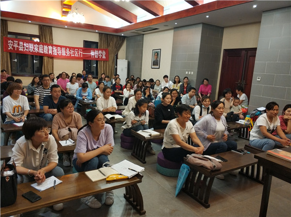 安平縣婦聯(lián)與仲舒學(xué)堂聯(lián)合開展家庭教育進(jìn)社區(qū)服務(wù)行系列活動——東城社區(qū)活動現(xiàn)場。