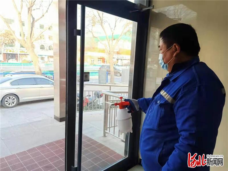 衡水環(huán)衛(wèi)工人對人員進行消毒。河北日報通訊員杜俊穎攝