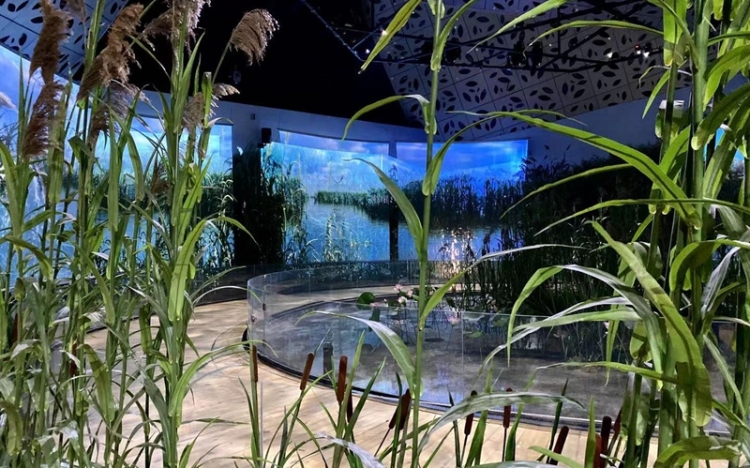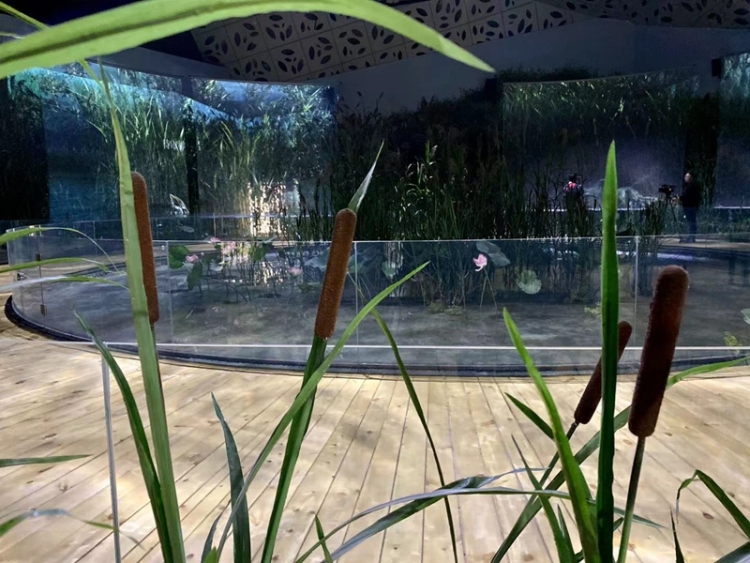 小屋主要分為兩大部分,其中序廳營造的是人類對大自然過度掠奪后受污染的湖底環(huán)境,主廳通過郁郁蔥蔥的蘆葦及栩栩如生的荷花等濕地元素,高度還原衡水湖的生態(tài)環(huán)境,兩者形成鮮明的對比和強(qiáng)烈的視覺沖擊,觸發(fā)游客對美好環(huán)境的向往。在主廳,游客可以踏上緩慢旋轉(zhuǎn)的轉(zhuǎn)臺,環(huán)繞四周大屏,欣賞到不斷閃現(xiàn)的衡水湖自然風(fēng)光。伴隨著《生態(tài)贊歌》主題曲的歌聲、風(fēng)聲和鳥鳴聲,游客仿佛置身于衡水湖碧波萬頃的湖水之中。(記者杜俊穎 通訊員李會龍)
