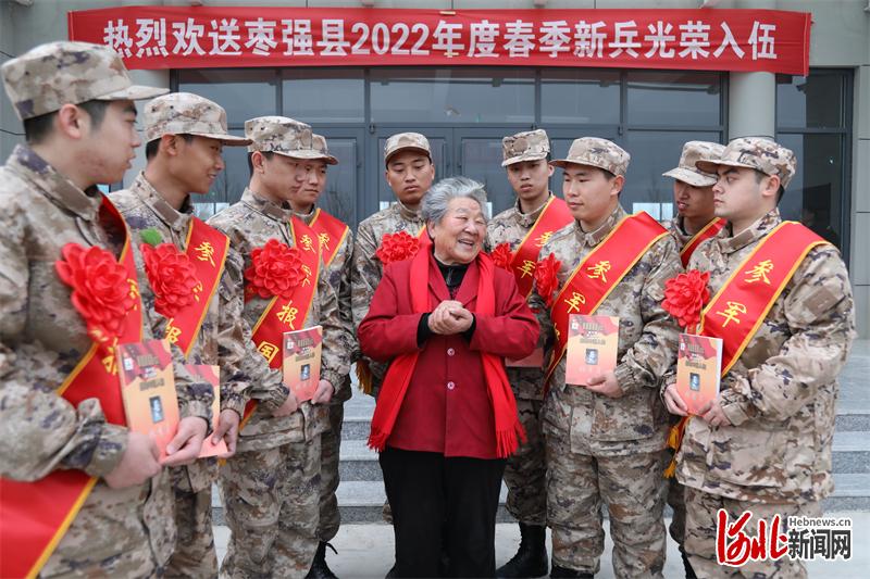 圖為全國道德模范林秀貞歡送棗強縣2022年度春季新兵光榮入伍。 河北日報通訊員楊雙池攝