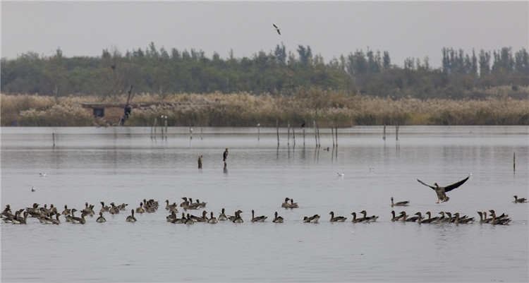候鳥遷徙衡水湖 深秋湖面美如畫