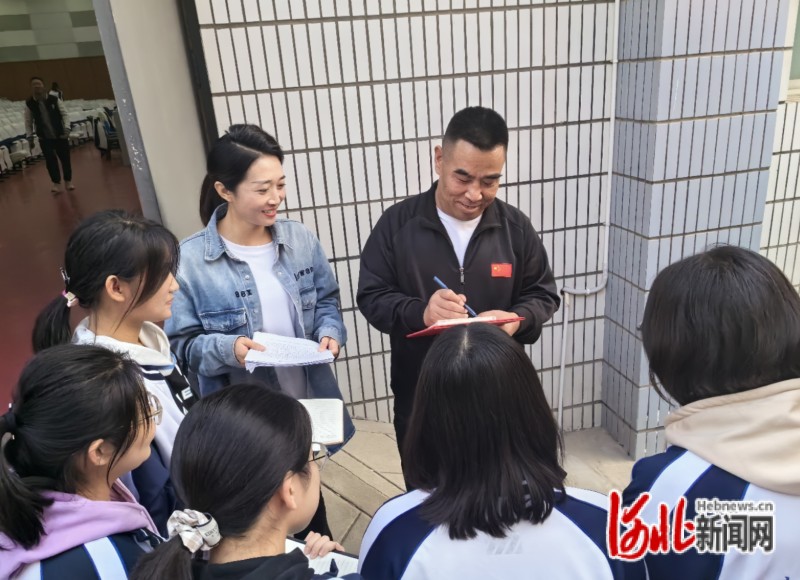 報告會結(jié)束后,張志旺(中)為河北衡水中學(xué)的學(xué)生們書寫寄語。河北日報記者焦磊攝