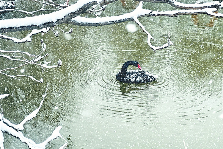雪中黑天鵝。梁冬攝