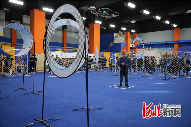 圖為國(guó)網(wǎng)衡水供電公司輸電運(yùn)檢中心職工時(shí)洪剛在無(wú)人機(jī)飛行比賽現(xiàn)場(chǎng)操縱無(wú)人機(jī)穿越障礙物。