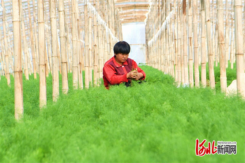 11月7日,饒陽縣大尹村鎮(zhèn)呂漢村村民張香團在棚室里收茴香。河北日報記者焦磊攝