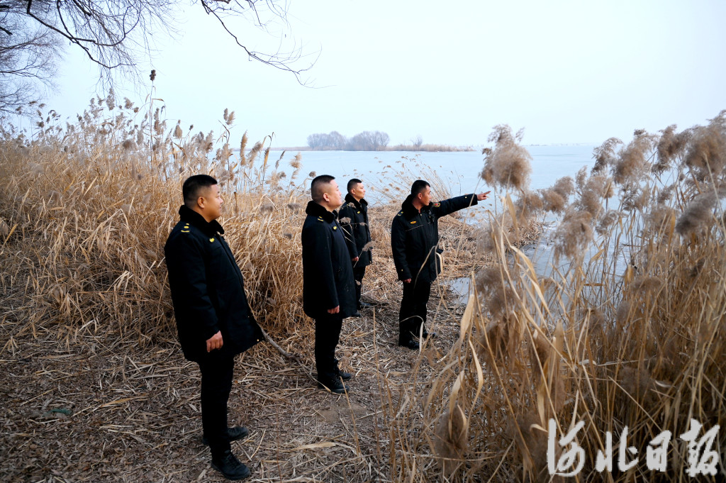 15時許,秦家南田村附近,衡水濱湖新區(qū)綜合管理局的幾名執(zhí)法隊(duì)員從蘆葦叢中走過!斑@里的冰面已經(jīng)開始融化,候鳥肯定來這兒覓食。咱們加強(qiáng)巡視,別讓人驚擾到鳥兒!44歲的孫丙言說。