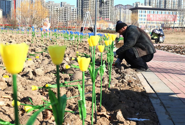 在風(fēng)雅文化園區(qū)周邊,十二生肖系列、國(guó)潮系列的花燈已經(jīng)安置在公園內(nèi),仿佛正等待著游客們的到來(lái)。屆時(shí),大家可以在這里進(jìn)行拍照打卡,體驗(yàn)傳統(tǒng)花燈與潮流時(shí)尚碰撞帶來(lái)的樂(lè)趣。此外,還有寓意祝福、珍惜眼前幸福和愛(ài)情的郁金香、玫瑰花花海區(qū),工人們正在安裝郁金香、玫瑰花花燈,為燈會(huì)期間的“千人相親會(huì)”做準(zhǔn)備。
