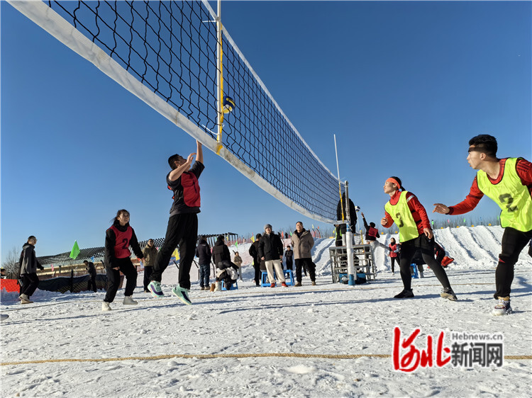 1月24日,在衡水市首屆“冰雪迎新春”嘉年華活動現(xiàn)場,運(yùn)動員正在進(jìn)行雪地排球比賽。翟一杉攝