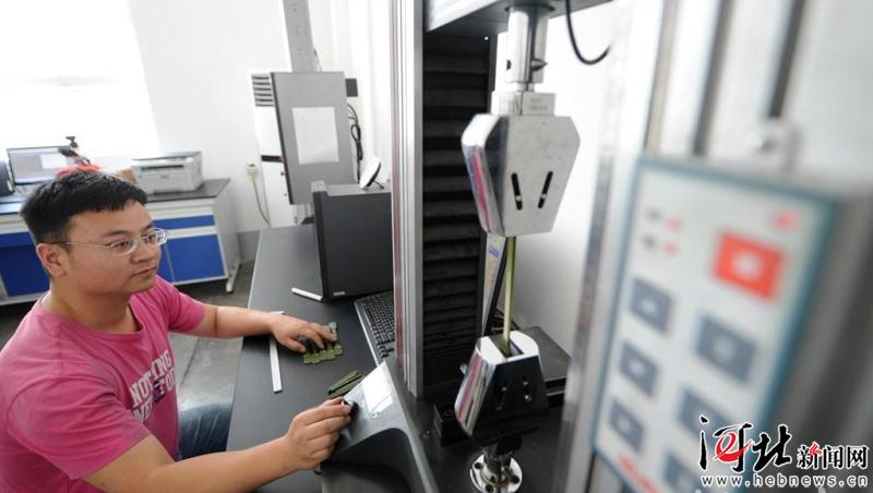 5月23日,位于文安縣經(jīng)濟開發(fā)區(qū)的廊坊北化高分子材料有限公司項目實驗室內(nèi),工人利用精密儀器對產(chǎn)品進行技術(shù)指標測試。
