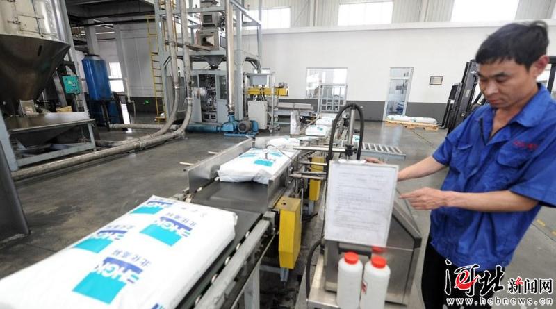 5月23日,位于文安縣經(jīng)濟開發(fā)區(qū)的廊坊北化高分子材料有限公司工人生產(chǎn)包裝產(chǎn)品。