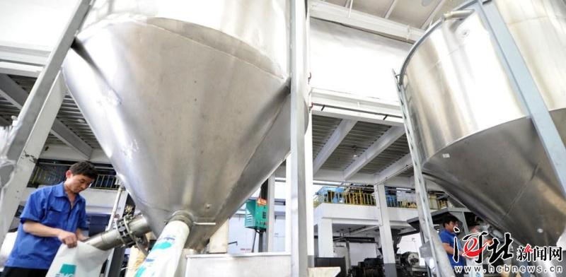5月23日拍攝的位于文安縣經(jīng)濟開發(fā)區(qū)的廊坊北化高分子材料有限公司產(chǎn)品生產(chǎn)線。