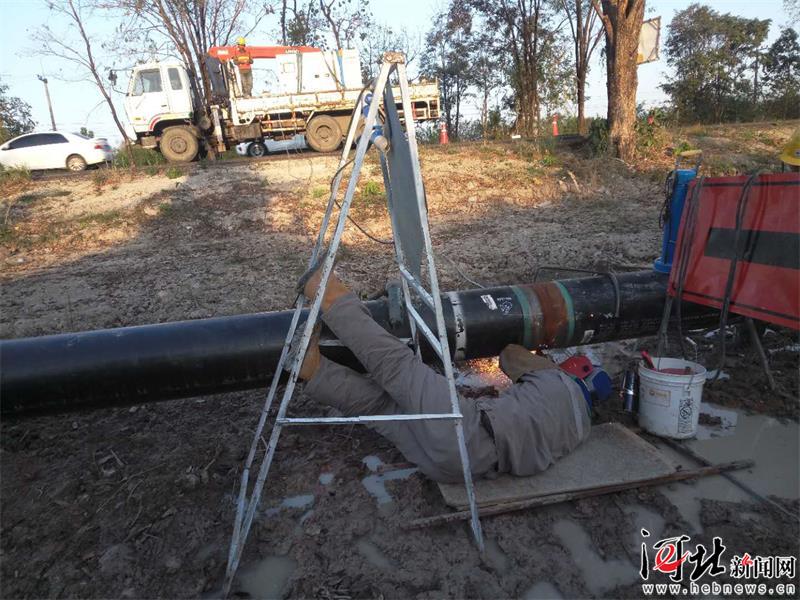 北部成品油項(xiàng)目建設(shè)過程中,焊工“倒掛金鐘”完成焊接施工。