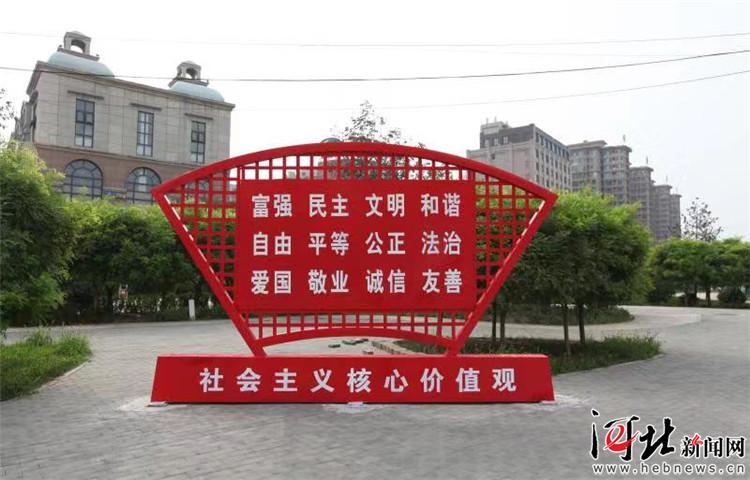 以“立體化全覆蓋”為標(biāo)準(zhǔn),香河形成濃厚的文明創(chuàng)建氛圍。圖為遍布縣城社區(qū)的社會主義核心價值觀宣傳雕塑。