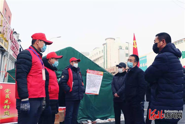 廊坊市住房和城鄉(xiāng)建設局領(lǐng)導到市區(qū)無物業(yè)小區(qū)黨員先鋒崗檢查疫情防控工作,慰問一線黨員。 通訊員石勁松攝
