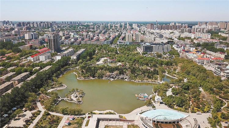 廊坊市人民公園風(fēng)景如畫(航拍)。 記者楊錦樂攝