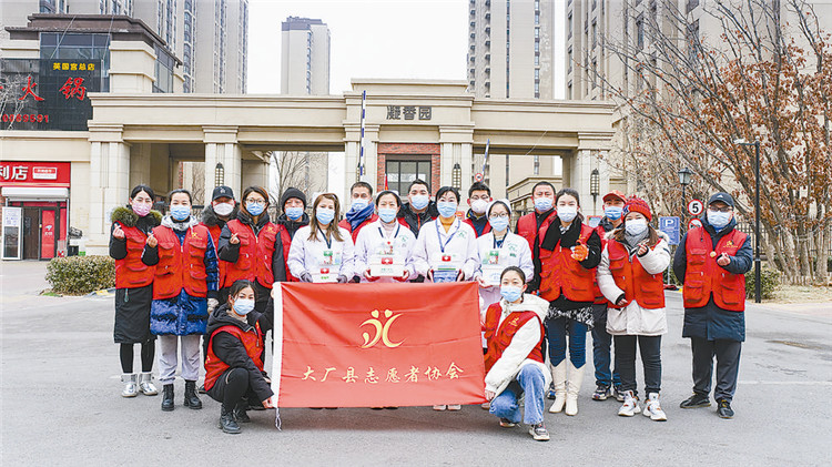 黨有號(hào)召,團(tuán)有行動(dòng)。河北疫情發(fā)生后,廊坊市各級(jí)團(tuán)組織、廣大青年聞令而動(dòng)、迅速集結(jié),招募1600余名志愿者,按照黨委政府的統(tǒng)一部署,分赴160個(gè)村街社區(qū)開(kāi)展卡口執(zhí)勤、信息登記、秩序維護(hù)、物資運(yùn)送等志愿服務(wù);已成立醫(yī)療、交通、供電、消防等領(lǐng)域青年突擊隊(duì)82支,奮戰(zhàn)在抗疫情、保運(yùn)轉(zhuǎn)一線,以實(shí)際行動(dòng)奉獻(xiàn)擔(dān)當(dāng)、守護(hù)廊坊。 圖為大廠青年志愿者開(kāi)展送便民藥箱進(jìn)社區(qū)活動(dòng),為居民免費(fèi)送藥上門(mén)。 通訊員施團(tuán)偉攝影報(bào)道