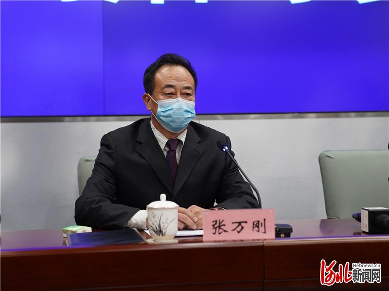 圖為廊坊市市場(chǎng)監(jiān)管局黨組書(shū)記張萬(wàn)剛介紹疫情防控期間全市市場(chǎng)價(jià)格監(jiān)管情況。