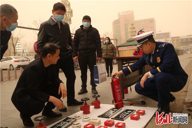 圖為三河市消防救援大隊工作人員向群眾講解辨別真?zhèn)蜗喇a(chǎn)品的方法。