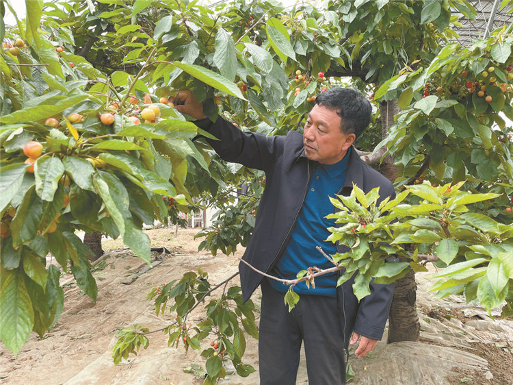 種植戶(hù)顧士仁正在介紹櫻桃品種。記者滕雪葉攝