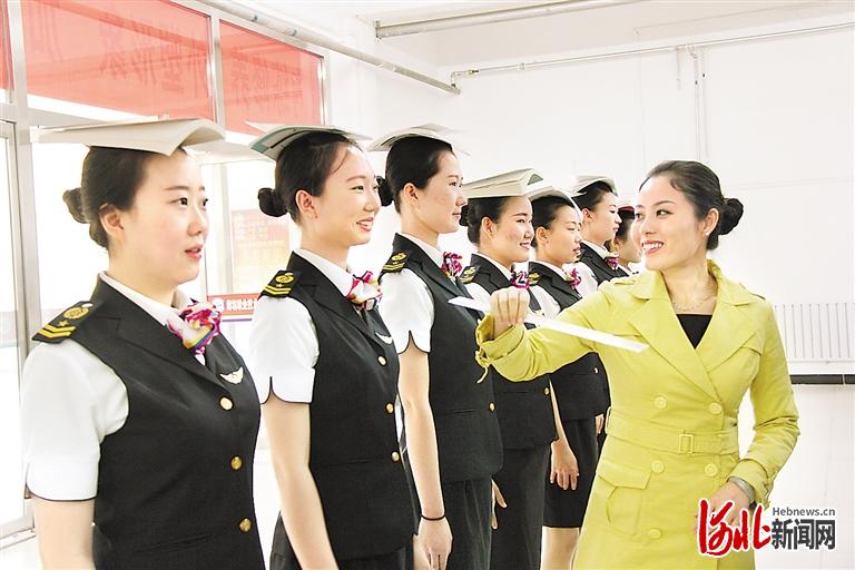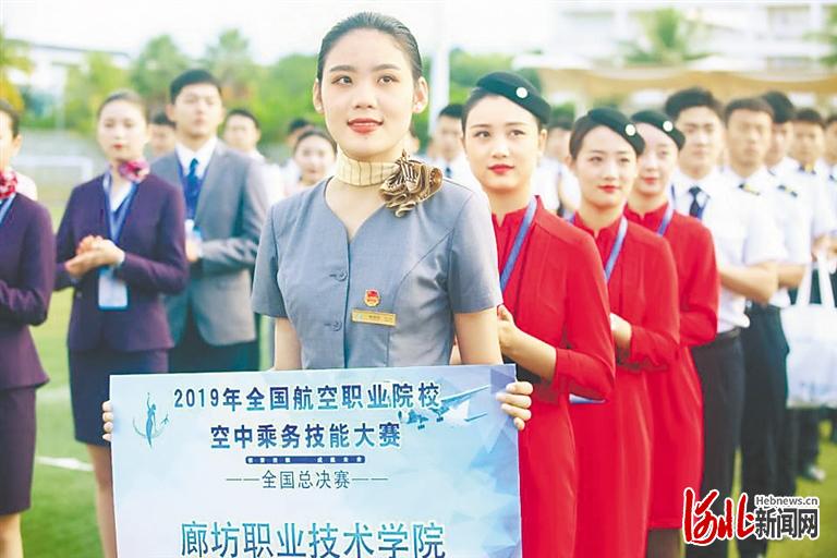 廊坊職業(yè)技術(shù)學(xué)院文化傳媒與服務(wù)系學(xué)生參加2019年全國航空職業(yè)院校空中乘務(wù)技能大賽。(河北日報(bào)資料片) 河北日報(bào)通訊員王麗麗攝