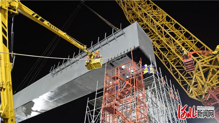 河北新聞網(wǎng)訊(劉偉、馬立峰、周禹佳)5月9日凌晨至5月17日凌晨,經(jīng)過七次封鎖要點施工,由中鐵六局集團(tuán)石家莊鐵路建設(shè)有限公司承建的位于三河市的京唐城際鐵路跨燕郊東環(huán)路特大橋門式墩跨京哈鐵路鋼橫梁順利完成全部7孔鋼梁架設(shè),圓滿完成了既定的施工任務(wù)目標(biāo),為后續(xù)鋼箱梁架設(shè)及全線開通奠定了堅實的基礎(chǔ)。
