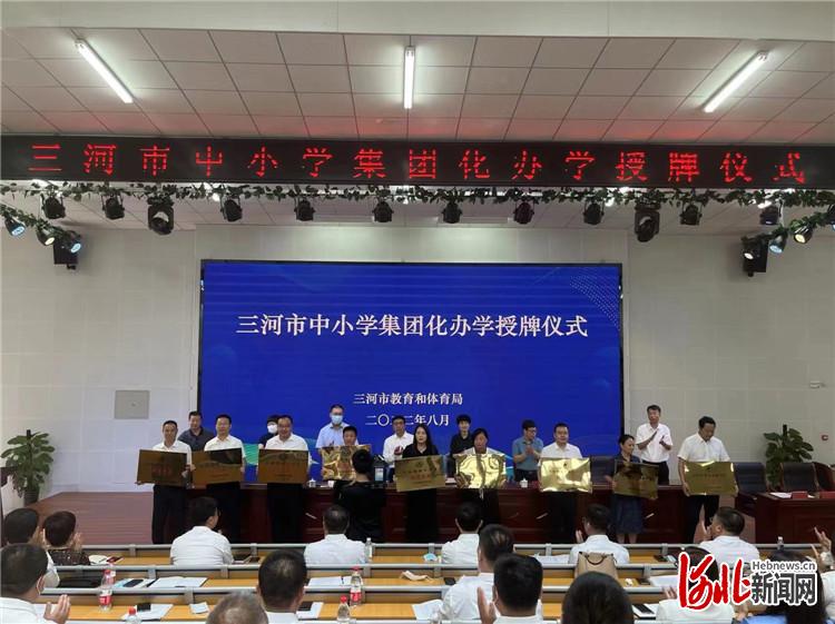 圖為三河市中小學(xué)集團(tuán)化辦學(xué)授牌儀式現(xiàn)場。