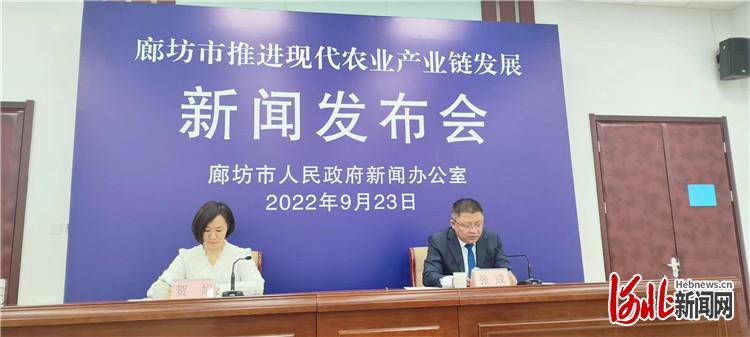 9月23日,廊坊市人民政府新聞辦公室組織召開“廊坊市推進(jìn)現(xiàn)代農(nóng)業(yè)產(chǎn)業(yè)鏈發(fā)展”新聞發(fā)布會(huì),圖為會(huì)議現(xiàn)場。通訊員趙保江攝