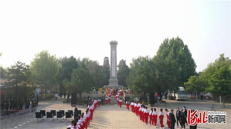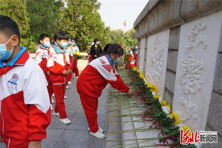 圖為三河市小學生為烈士敬獻鮮花。通訊員王馳攝