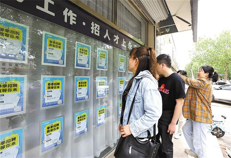 圖為市民正在零工市場春季崗位招聘專欄前瀏覽工作崗位。 通訊員龐趁友 記者劉磊攝