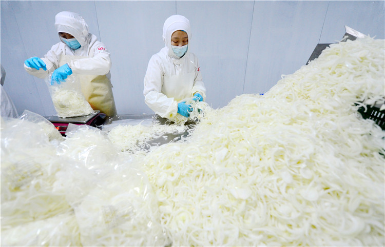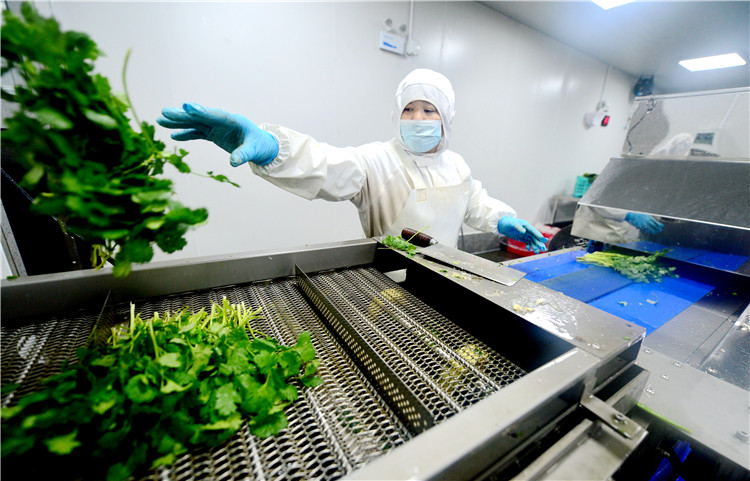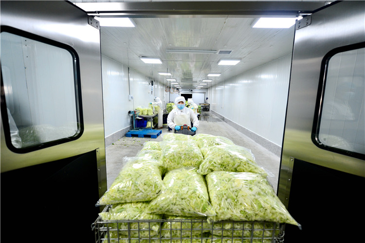 12月20日,工作人員在固安縣一家凈菜加工企業(yè)生產(chǎn)車間內(nèi)作業(yè)。