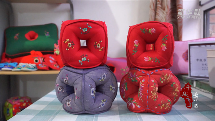耳枕,因在枕頭的中心留有一孔,側(cè)睡時(shí)可以保護(hù)耳朵不受壓迫而得名。河北香河的金錢(qián)耳枕歷史悠久、制作工藝繁瑣,要經(jīng)過(guò)印花、印字、裁剪、繡花、縫制、填充等多道工序。近年來(lái),耳枕傳承人不斷改造創(chuàng)新,從祖輩的粗布碎布到現(xiàn)在的各種棉布、錦緞布料,從單一拼接的花色到里外刺繡,造型也從過(guò)去的方形衍生出六孔圓形、十四孔長(zhǎng)方形等,實(shí)用的同時(shí),賦予耳枕較高的藝術(shù)收藏價(jià)值。