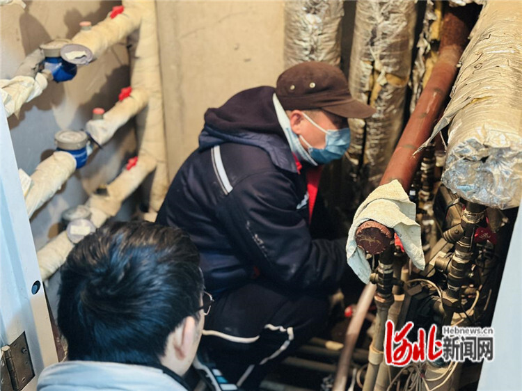 12月11日,廊坊市廣炎供熱有限責(zé)任公司北環(huán)站,維修工正在為用戶清理過濾網(wǎng)。廊坊市廣炎供熱有限責(zé)任公司供圖