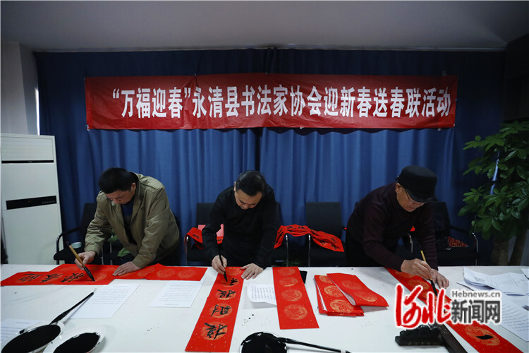 在春節(jié)即將來臨之際,永清縣精心組織開展“新春到永清 歡樂過大年”系列文化活動。從1月19日起,永清縣委宣傳部組織縣書法家協(xié)會會員走進(jìn)書香小鎮(zhèn)、彩木營村、花苑社區(qū)等村街社區(qū)、企事業(yè)單位,開展進(jìn)基層送春聯(lián)系列活動。截至目前,累計(jì)送出5000余副春聯(lián)和福字,既活躍了節(jié)日氣氛,又把祝福送到了群眾手上。