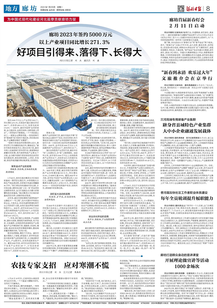廊坊2023年簽約5000萬元以上產(chǎn)業(yè)項目同比增長271.3%