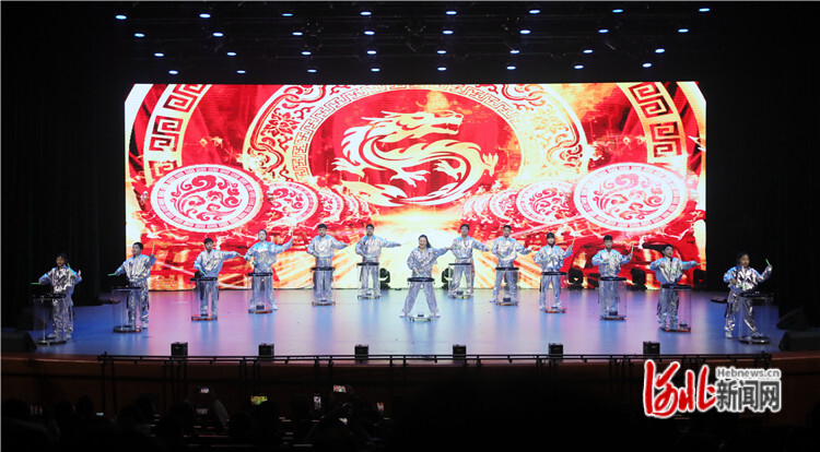 圖為在固安縣大劇院,演員們正在表演水鼓節(jié)目《龍騰盛世》。通訊員張思琪攝