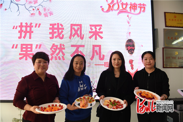 平舒鎮(zhèn)程盛社區(qū)開(kāi)展的水果拼盤慶“三八”婦女節(jié)主題活動(dòng),女性朋友手捧制作好的水果拼盤留念。通訊員劉亮攝