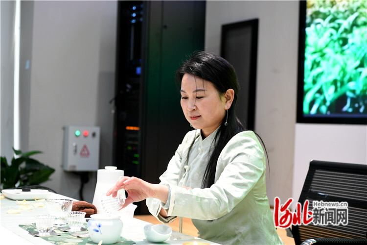 3月6日,廊坊市安次區(qū)總工會在廊坊高新區(qū)孵化園舉辦慶“三八”暨茶藝培訓(xùn)會。圖為茶藝?yán)蠋熣谶M(jìn)行茶藝表演。通訊員齊文靖攝