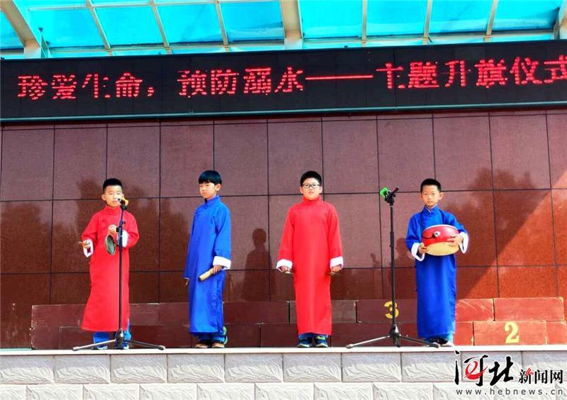 6月10日,秦皇島市海港區(qū)交建里小學(xué)四三班的孩子們正在表演“珍愛生命,預(yù)防溺水”主題詩朗誦。