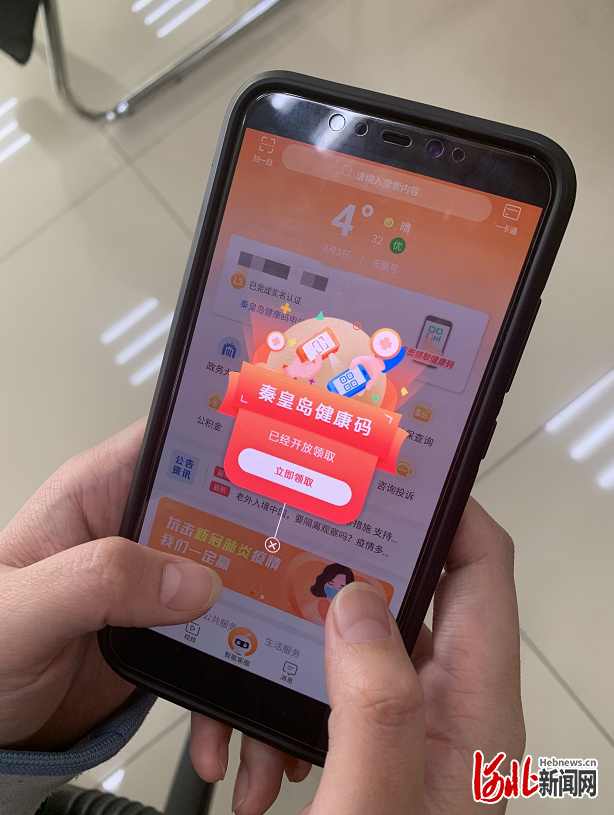 圖為秦皇島居民可在手機(jī)下載“幸福秦皇島”App獲取秦皇島健康碼。