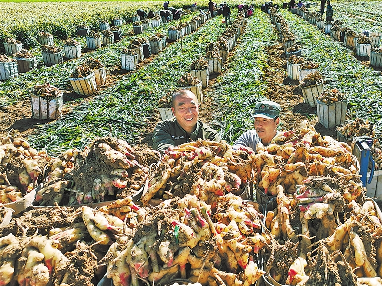 “四照莊僅有400多戶人家,今年村里種植生姜3000畝,畝產(chǎn)平均1.3萬斤,總銷售額可達1.2億元左右,農(nóng)民獲利也在5000萬元以上。”四照莊村黨支部書記孫儉利說。