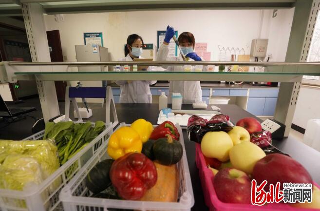 工作人員對(duì)蔬菜水果樣品進(jìn)行檢測。 王繼軍攝