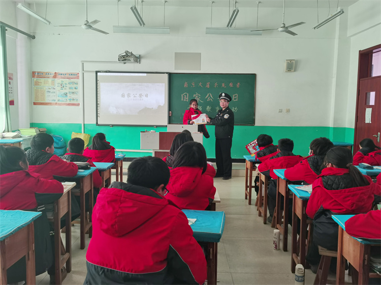 當(dāng)天是南京大屠殺死難者公祭日,教室里,民警向?qū)W生們介紹了國家公祭日的由來,播放了《南京大屠殺調(diào)查》紀(jì)錄片節(jié)選片段,使學(xué)生進(jìn)一步了解到南京大屠殺的歷史背景、事件始末,教育引導(dǎo)廣大學(xué)生不忘民族苦難,牢記歷史悲劇,樹立正確理想信念,弘揚(yáng)民族斗爭精神,勤奮學(xué)習(xí),刻苦鉆研,為祖國的繁榮富強(qiáng)而奮發(fā)進(jìn)取。